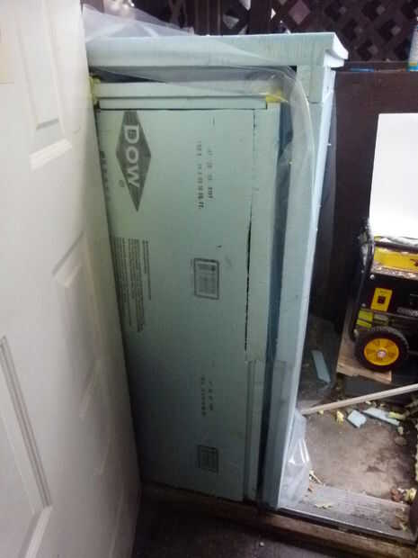 Pongo en una espuma de poliestireno "puerta". Pensé esto apropiado como las temperaturas eran un poco altas en el sótano, y pensé que venía a cierta cantidad de calor a través de la puerta. Como el invierno se instala en, espero que se reducirá la temperatura de la bodega. Cuando lo hace, podrá eliminar este panel calor puerta para mantener caliente. Si no mantiene de congelación (es un poco fría en estas partes) voy a poner en un calentador controlado por arduino (otro instructivo.)