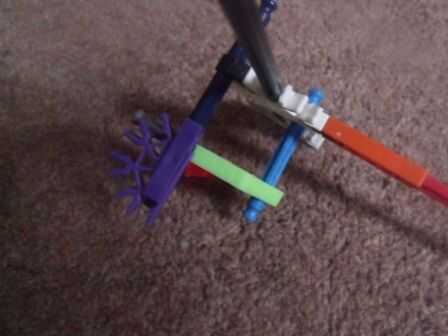este es un elemento de la máquina de bolas KVGCuando la bola pasa a archimedes vueltas de tornilloPaso 1: los soportes hacer que estosPaso 2: el camino hacer que estosPaso 3: el tornillo de Arquímedes hacer que estosConecte las barras verdes a los co