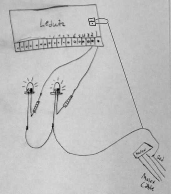 Estamos a punto de hacer un montón de trabajo y ciegamente la esperanza de que todo esté conectado correctamente hasta el final. De miedo! Por lo tanto, primero asegurémonos de que sabes lo que estás haciendo y que esto va a funcionar. Prueba de tiempo de ejecución. Si esto funciona, el resto es torta. Usted debe han llevado extra luces, así que escoja dos extras para la prueba. Siga el diagrama. Soldadura de resistencias de 200 ohm a poste negativo de cada LED. Cadena el rojo cable de alimentación el cable molex de PC al poste positivo de cada LED y también a las ranuras del Banco seleccione voltaje en el LEDWiz. Después de la resistencia, soldar un cable a la resistencia que va a la ranura de salida "1" en el LEDWiz y el otro LED va a la ranura de "2". Abra el panel de LEDWiz Control (suministrado). Las indicaciones para utilizar este programa se describen en detalle en el paso 5 de esta guía. Si las luces son controlables, ¡ Felicidades! Si no, compruebe todas las conexiones y tal vez a tratar de conseguir una luz primero. Ahora es el momento de pasar a lo real.