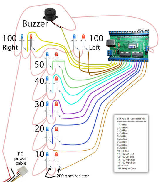 Hay mucho más que en este momento. Los LEDs están todos pegados o montados de alguna manera en el lugar. Sabemos que los mensajes positivos (los que no los resistores conectados) deben conectarse entre sí, todo termina en el molex de PC cable rojo. Luego, conectas un cable a la vez a la resistencia conectada al poste negativo en cada luz del LED. Cuidadosamente de la grapa y pasar el alambre a la parte superior de la máquina skeeball, entonces hasta donde pones el LEDWiz. Conecte este cable a la ranura de LEDWiz con la etiqueta de la clave en el esquema. Yo también pondría un poco de cinta en el cable cerca de la LEDWiz y marcado que el cable está conectado a para solucionar futuros problemas de la luz. Recomiendo completamente conectando una luz primero, luego pruebas antes de pasar. Lo último que quieres es conectar todo, sólo para descubrir que ninguno de ellos trabaja. En la mía tenía algunas conexiones sueltas en la cadena positiva y ninguna luz trabajó. Me tomó un tiempo para averiguar el problema, así que asegúrese de que funciona antes de pasar a la siguiente luz. Una vez que se conectan todas las luces, enciende el panel de control. Es parte del software LEDWiz que se puede descargar en el paso final. Haga clic en el icono de LEDWiz en el panel de control y seleccione Panel abierto. Sobre el panel, haga clic en LumAura Control para probar las luces. Sobre el centro de Control de LumAura, haga clic en los números para enviar energía a esas conexiones. Ejemplo: haga clic en 1 en el panel de control y deben iluminar la luz roja 10 - click1 otra vez al trun apagado. Probar todo y fijar las conexiones sueltas. Flip a la tabla de puntuación a la normalidad y vuelva a conectarlo a la tabla. Agregar los nuevos archivos, publicados en el último paso y disfrutar!