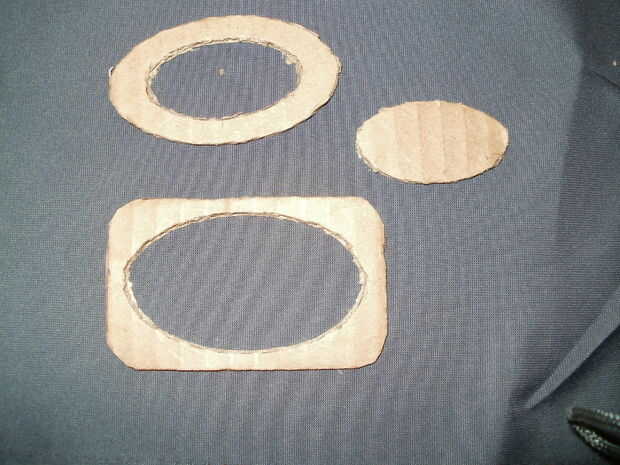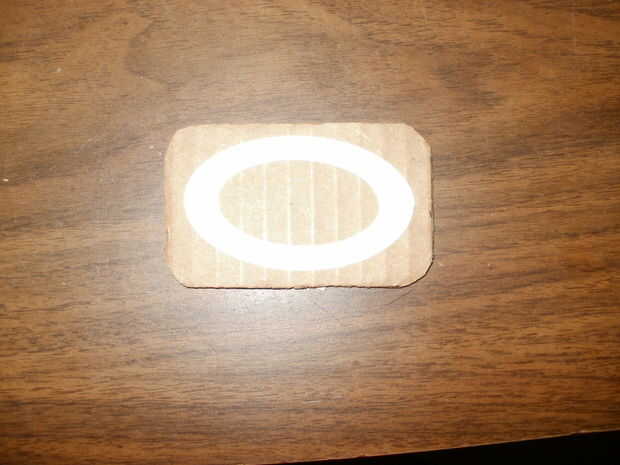 Primero quiere decidir qué forma quieres tu bolas de la Junta que. Que su forma fuera del papel para conseguir el tamaño correcto (hice un óvalo). Trace y corte cortan la forma de la cartulina. Asegúrese de que usted guarde el pedazo de centro que corta fuera de la cartulina.