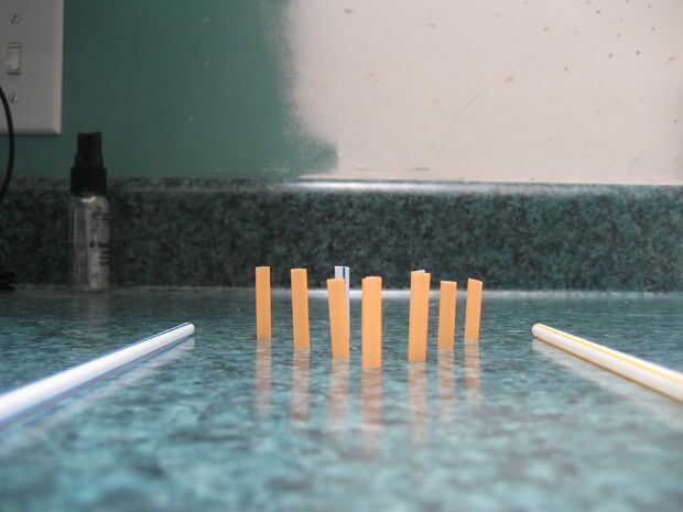este es un pequeño callejón de bowling hecho de materiales comunes del hogar. Se ajusta dentro de dos latas de Altoids y es bastante sencillo de hacer. Toma algún tiempo =, solo para hacerle las cosas parecen buenas, pero deben ser capaces de ser ter