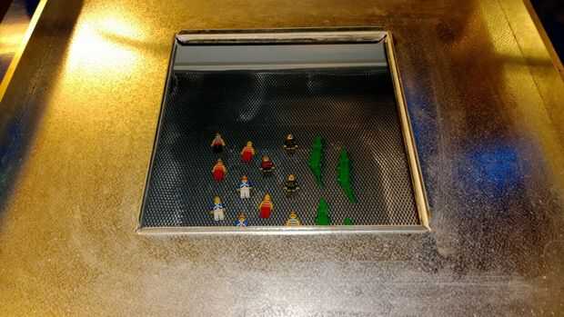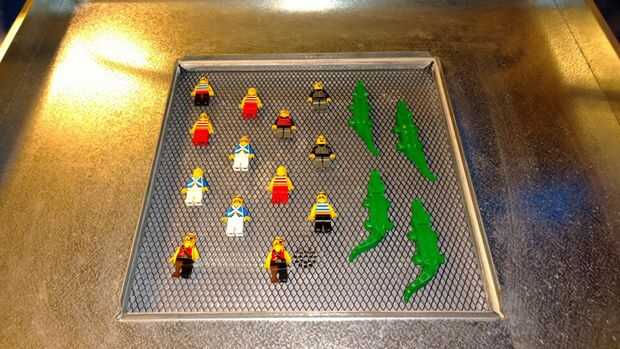 A continuación, debe crear un diseño de molde. Con la placa adhesiva hacia abajo, puse todo de mi mini higos. Hará temblar alrededor de un poco de la plataforma va hacia abajo y hacia arriba. Podría tratar de asociar a una superficie grande y plana lego, pero debes tener cuidado de no cubrir la toma de aspiración. Trabajó bastante bien sin, sin embargo. Mantenerlos lejos del borde por aproximadamente una pulgada.