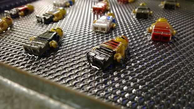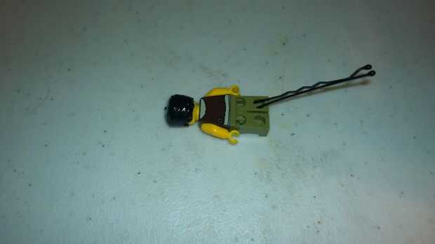 Los higos mini serán pegados en el plástico. Por suerte, se dobla y sale fácilmente. Usé un palillo similar en tamaño a lance de un hombre LEGO a la cadera para arriba desde el orificio en la parte posterior de las piernas. Funcionó bastante bien. No tengo una foto de ese día, pero hay una foto para mostrar donde para. Si usted Levante desde el otro lado, podría rasgarse a través del "talón" de la fig mini, que a mi me pasó una vez.