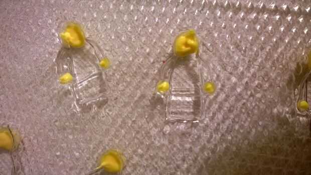 Debe ablandar el chocolate en los tubos. Sólo usé una olla en la estufa con agua tibia, y lo hice por la sensación. Una vez que el tubo entero era suave, me llevó la tapa y aprieta en los lugares que yo quería chocolate.