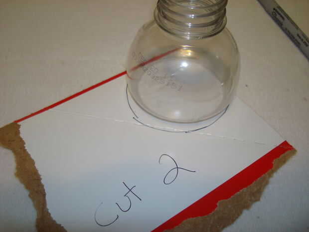 • Con la corte superior de la botella como un patrón, colóquelo sobre el cartón y dibujar alrededor de la base con un marcador.