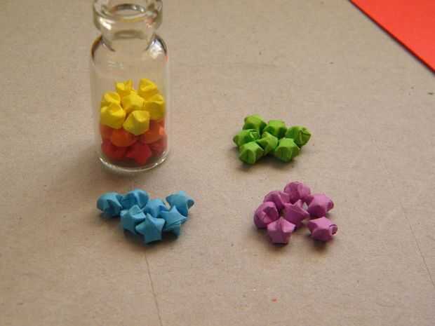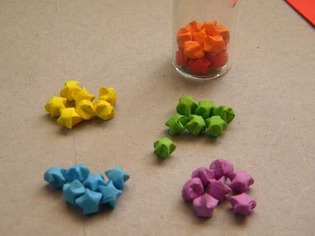 Hacer varias estrellas de origami y llenar su capa 1, arreglar entonces correctamente usando un palillo.
