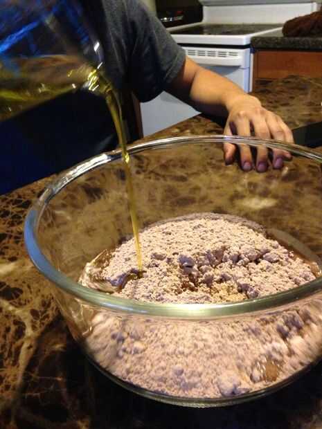 En primer lugar se necesita un recipiente, una vez que tengas un recipiente viertes hacia fuera de la batidora en el recipiente. Ahora agarra tu taza y necesita 2/3 de aceite vegetal, 1/4 de agua y 2 huevos.