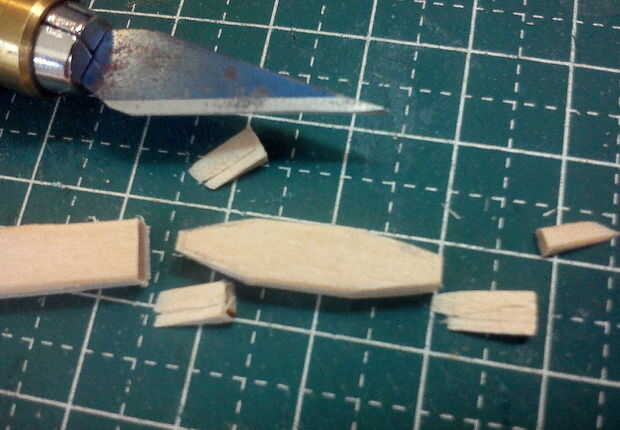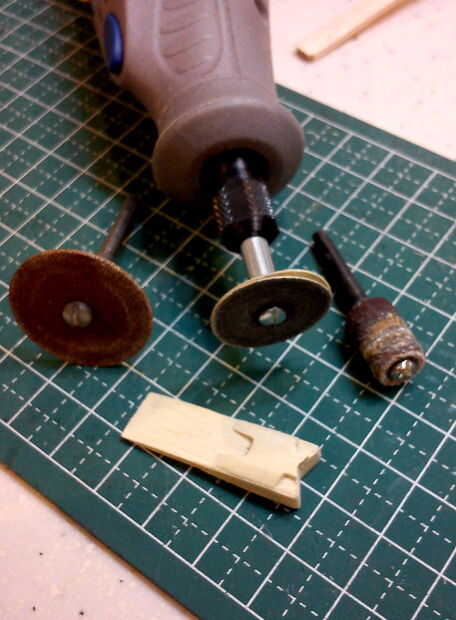 Otra capa de paletas regulares del palillo de la parte trasera superior y parte inferior trasera de la armadura de avión fue formado usando un cortador olfa y un accesorio de la rueda de corte en una herramienta de la moto. La rueda de corte se utilizó para tallar una muesca en la parte superior trasera de la célula que debe ajustarse el dosel superior de la cabina. La parte superior trasera fue pegada a la parte trasera de la célula de base y en forma de un accesorio de la lijadora de disco usando imágenes 3D de Taranis como referencia.