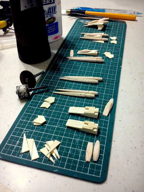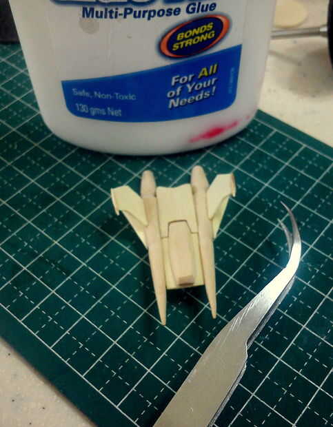 Las alas delta se agregaron después el pegamento blanco las alas auxiliares con la izquierda y pilones de la arma derecha motor han establecido. Por último, las puntas de las alas en el extremo de cada alas auxiliares fueron fijadas en lugar.