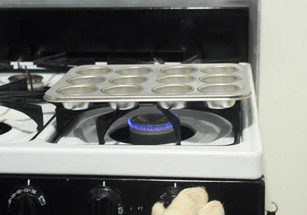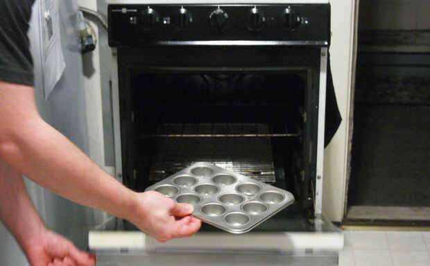 Coloque las latas engrasadas en el horno durante 5 a 10 minutos, hasta fumar.