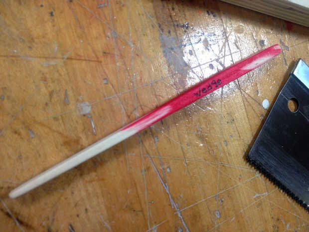 * Por lo general, me pinta una sección de la cuña y etiquetarla para que no se mezcla con otras maderas y cortar accidentalmente.
