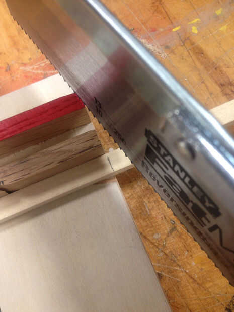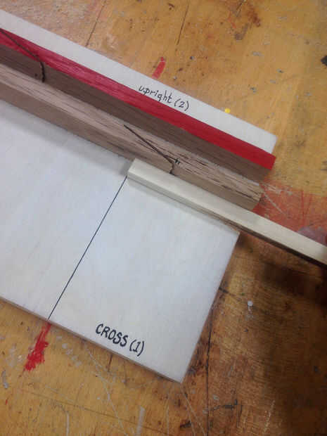 Última pieza de caballete es la Cruz. Alinee el extremo de su madera para la línea dibujada en la plantilla. Asegure la pieza contra el fondo que tira y deje que su hoja de sierra para ser apoyados por los extremos y hacer su corte final usando la plantilla.