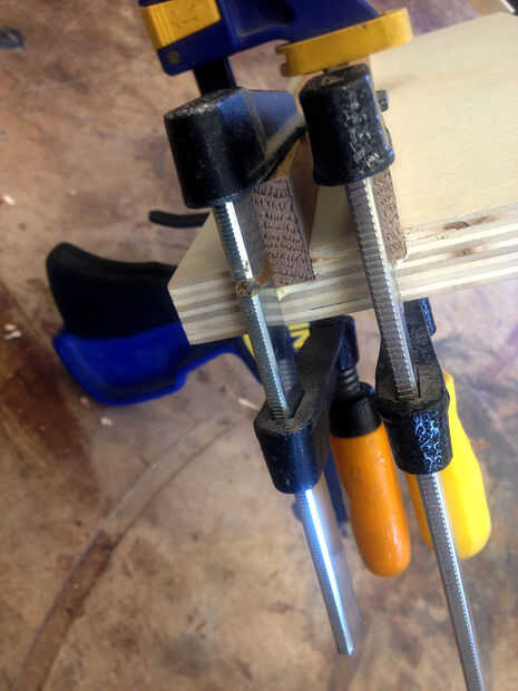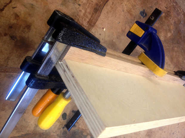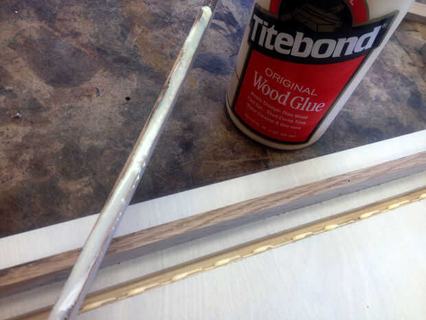 Añadir un pequeño chorro de cola por cada ranura y en el lado largo flaco de la franja espera seguir adelante y ajustar la tira en cada ranura. Con abrazaderas a cada lado y en el centro de la abrazadera hacia abajo de la madera y deje que se cocine por unas horas.