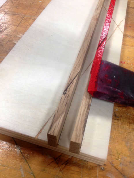 1: sugieren fuertemente la barra superior de la pintura un color brillante. Esta plantilla puede acomodar diferentes tamaños de madera, por lo tanto al cortar cada pedazo se debe sujetar la madera a la barra superior. Pintura simplemente ayuda a recordarle a la gente para colocar la madera en la plantilla correctamente.