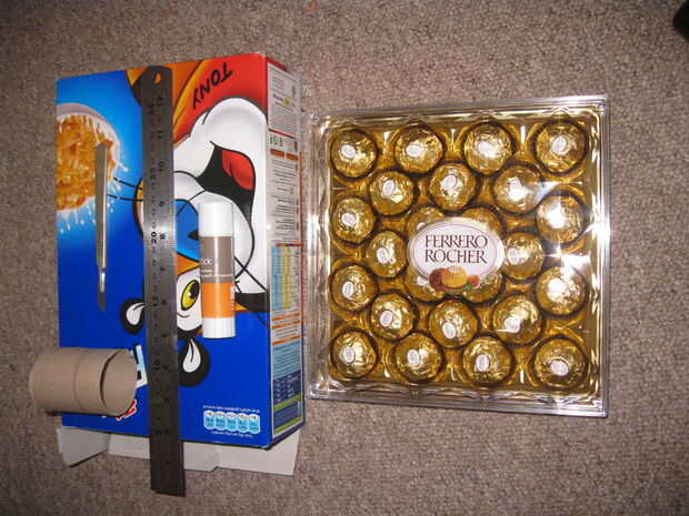 2 hojas de grosor medio cartón (utiliza cartulina de la caja de Cereal pero más grueso sería mejor)