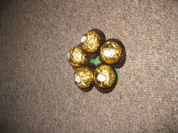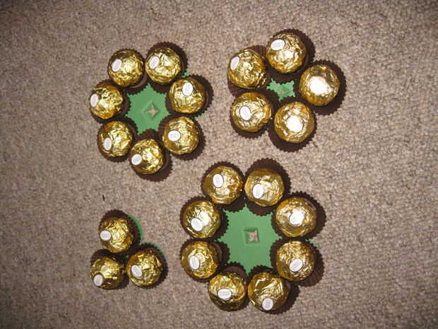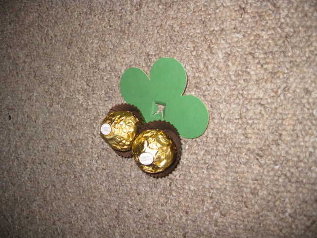 Recomiendo aplicar el pegamento a Ferrero, no la forma verde. También sugeriría cinta de doble cara o algún pegamento fuerte de secado rápido sería mejor aquí, así no caigan todo el tiempo!