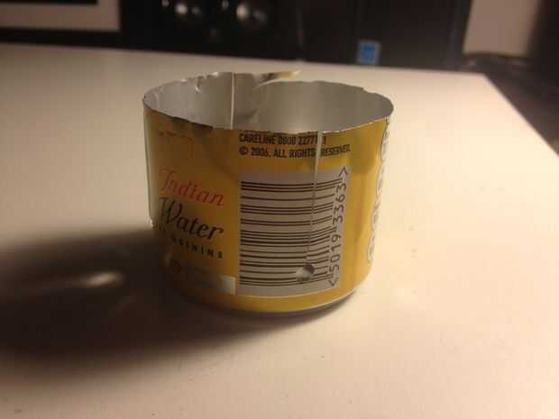 Este paso puede parecer inútil, pero es crucial si la estufa no se agrieta al poner juntos. Con un cuchillo, cortar las aberturas van desde la parte superior de la parte inferior la mitad a aproximadamente 1cm por encima del fondo completo. Hice cuatro de estos uniformemente espaciados aparte, podría mirarlo como un raja en N, S, E, w el. La posición de estos puede ser un poco aproximada. A continuación, en la parte inferior de cada corte, agujero de sacador o taladre un orificio en la parte inferior de cada corte. Si utilizas un taladro, puedo recomendar poner algo difícil apoyar el interior de la lata donde va a hacer cada hoyo. Pongo la mitad superior de la lata en lado inferior rasgada medio. Si taladra los agujeros, use un poco de un sacador de agujero de diámetro similar.