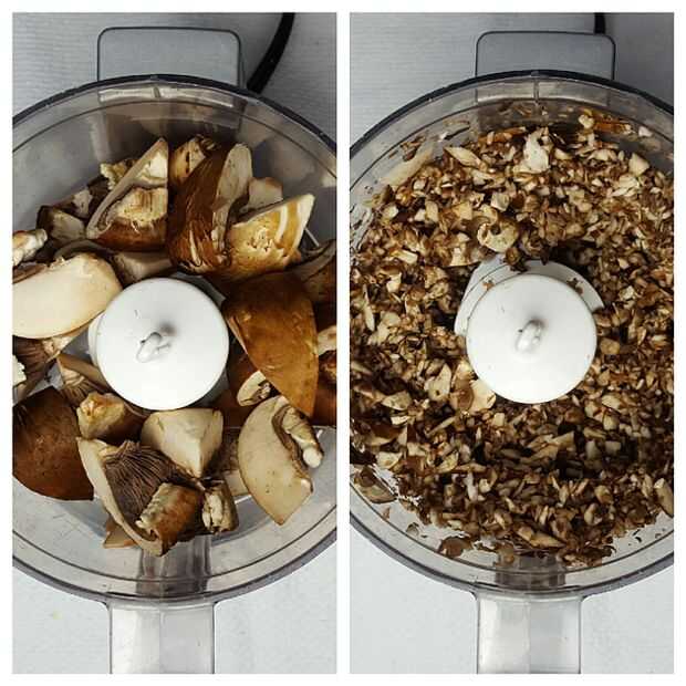 Colocar los champiñones en cuartos en un procesador de alimentos y el pulso en trozos pequeños.