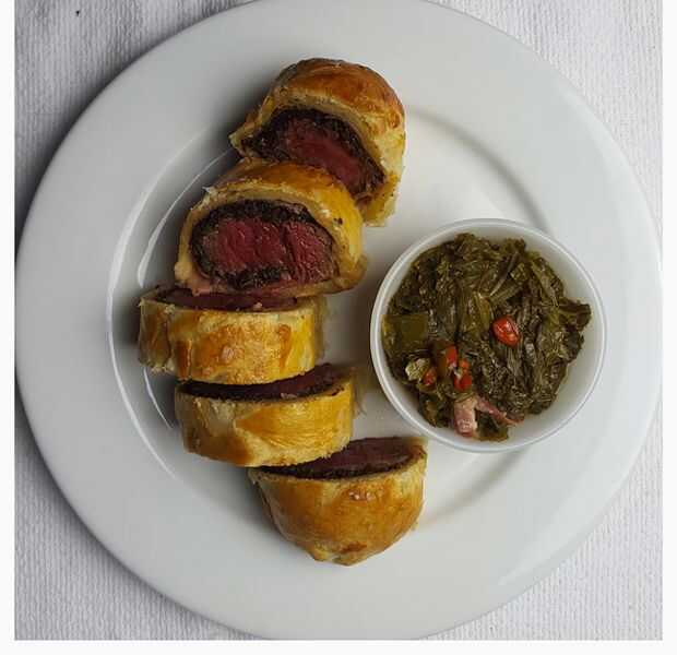 Retire el film transparente la masa. Coloque la masa sobre una placa para horno. Pincelar todo con el lavado de huevo, puntuación y espolvorear con sal maldon. Luego cocer al horno durante 20-25 minutos, dependiendo de cuán raros o bien hecho como tu carne.