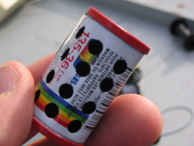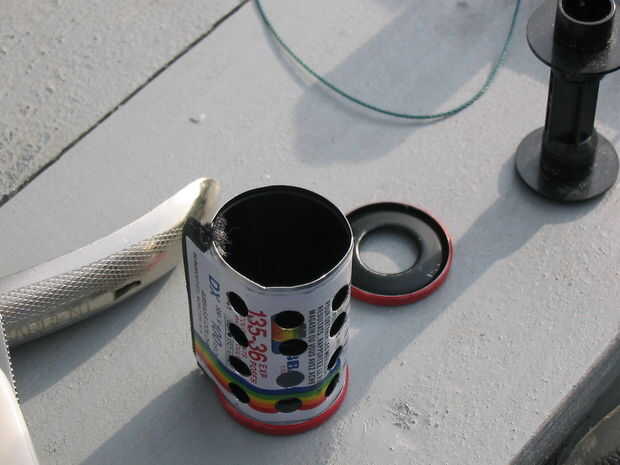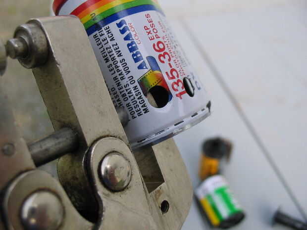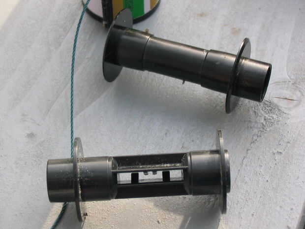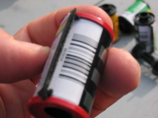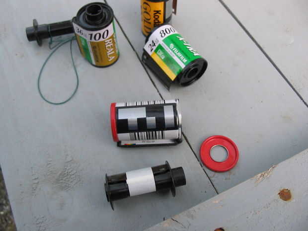 {Si el carrete interior tiene una ranura en se entonces usarlo si no abra un nuevos cartucho de marca de fuji utilizar el carrete de eso aún puede utilizar el núcleo sólido si quieres pero tienes que su línea hacia la cinta}.