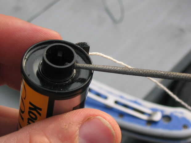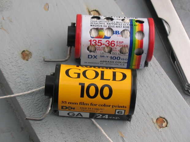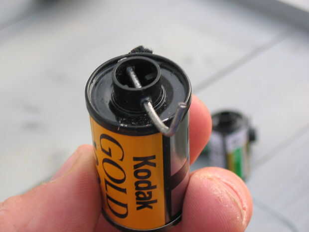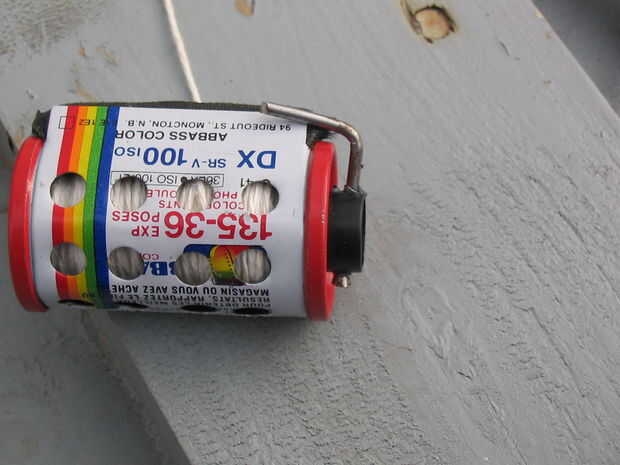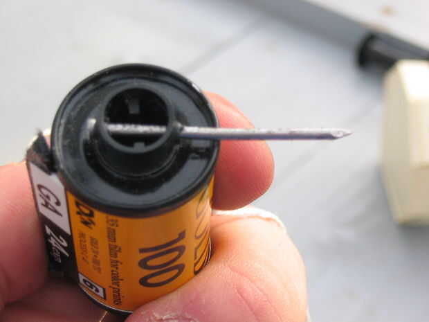 hay una manivela bonita y si estas en el lugar correcto se pliegue apretado contra el caso así que todo puede caber en la lata de película plástica.