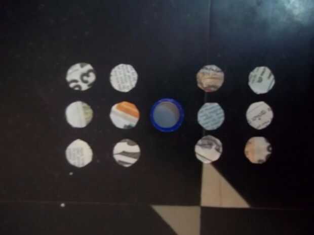 A continuación, tome otro casquillo. Calcular la circunferencia y corta círculos de 15-20 de esa circunferencia de periódico como se muestra en la figura anterior. Ahora empuje todos los círculos de papel en la tapa como se muestra en la figura anterior.