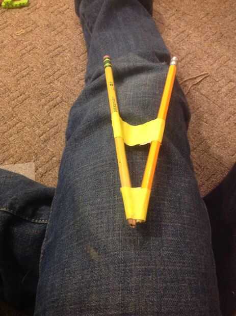 Ahora realizará sus dos lápices y juntar las puntas. Utilizar la cinta para celebrar juntos y poner un poco en el medio para que la cuchara no vuela de los lápices.