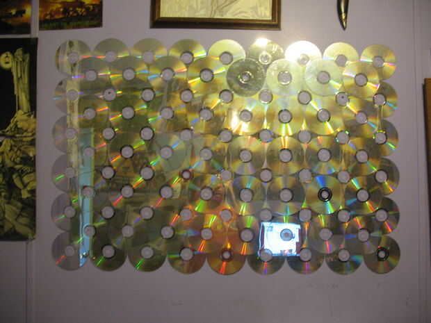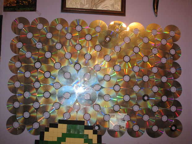 Ideas - se puede ampliar tanto como quieras. En otras palabras, sólo pegar más CD que de esta manera. Puede ser cualquier forma que desee. Rectángulos grandes se ven bien (sé por experiencia), y círculos más grandes están muy bien. Diviértete haciendo tu propia: D