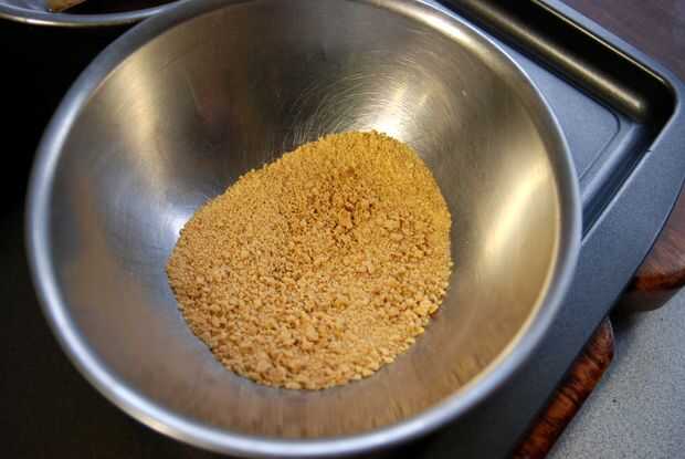 • Machacar las galletas a una consistencia de migas de pan. (Imagen 1)