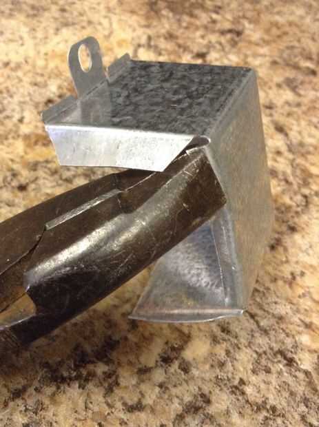 Despliegue la caja y cortar la tapa frontal con las cuchillas de metal de hoja. Volver a plegar el cuadro.
