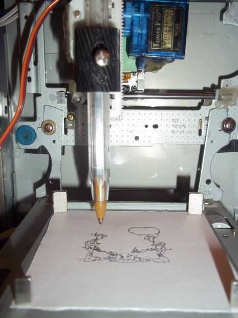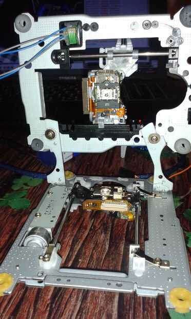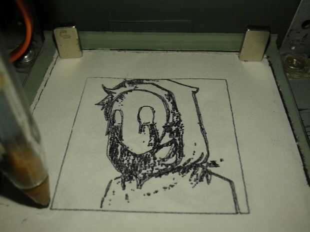 En la segunda imagen verás el eje X e Y. El eje X se une a dos piezas de plástico que saqué de las restantes cosas de 'basura'. Corte para adaptarse a la construcción. Este es un procedimiento fácil. Sólo asegúrese de poner el eje Y a base CNC y el eje X vertical en este (90 grados)