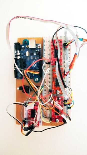 Una idea para mejorar este diseño es para agregar otra impresora de fotos compacta en la parte superior de la máquina. Haciendo esto, la espuma ahora está siendo exprimida entre dos rodillos activos (en lugar de un rodillo activo debajo y arriba los rodamientos). Esto requiere, por supuesto, un cuarto motor driver que tenga las mismas instrucciones de arduino como el otro compacto impresora paso a paso.