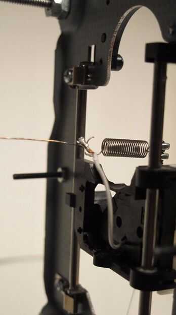 Utilizar el alambre del nicrom con un adaptador de 5V, cuando se utiliza un adaptador de 12V va rojo caliente que es ideal para fotografiar pero un poco demasiado caliente para la velocidad de los motores.