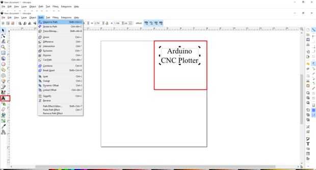 Poner texto, cambiar tipo de letra Times New Roman y tamaño a 22. Ahora haga clic en el icono de cursor y centrar el texto como la imagen 3. Seleccionar la ruta de menú y "A la ruta del objeto".