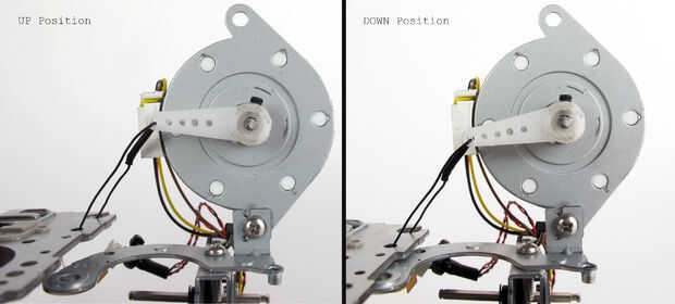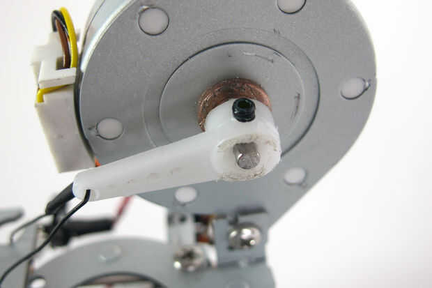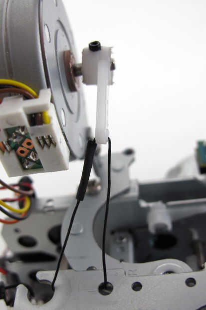 Porque cada mecanismo de DVD y sistema de devanado compacto impresora son ligeramente diferente, ideando un plan para el eje Z podría suponer cierta improvisación. Para esta versión de la máquina utiliza un motor paso a paso de chatarra (extraído de una cortadora de papel Silhouette Cameo) y reutilizar algunas otras piezas de desecho de la impresora para montarlo. Para el brazo de palanca utilicé un adaptador servo estándar y perforar un agujero para un tornillo de ajuste mantener el brazo en su lugar. También usé una dremel a un borde plano en el eje de paso a paso para permitir que el tornillo de ajuste encontrar la compra.