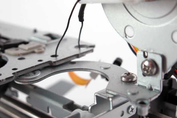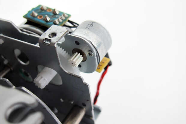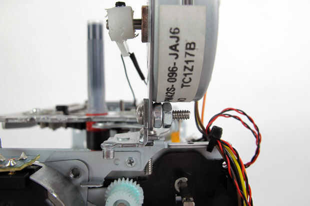 En versiones anteriores de esta máquina he utilizado el mecanismo de paso a paso del motor ya incorporado en la impresora de fotos compacta y adaptada por lo que sólo puede levantar el mecanismo de DVD con bisagras. Esto es una solución mucho más elegante y mantiene el tamaño de la impresora así.