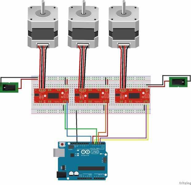 Estoy usando tres controladores de motor paso a paso fácil y un arduino y usando las conexiones de pines Grbl (que voy a llegar a en el paso siguiente).