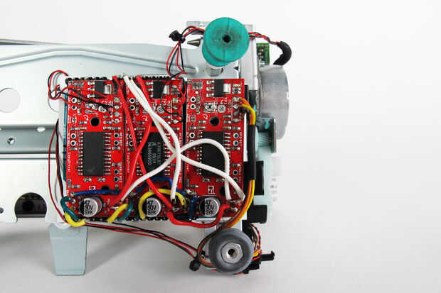 He añadido cuatro pernos a la parte inferior de la impresora fotográfica compacta para permitir que los conductores de Uno/paso a paso a introducir debajo. Posicioné el USB y enchufe cerca del borde exterior de fácil acceso.