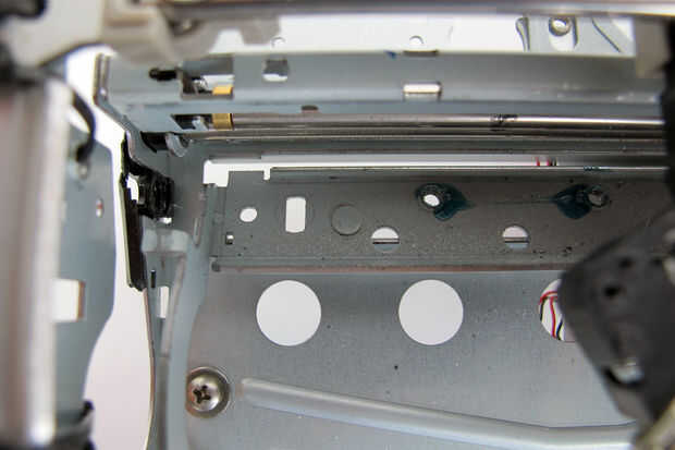 Mediante la adición de una pieza de metal de desecho de la impresora de fotos compacta es posible crear una agradable superficie de dibujo de la pluma del plotter. Esta pieza de metal se levanta el papel que está atravesando por lo que siempre a una altura buena para la pluma.