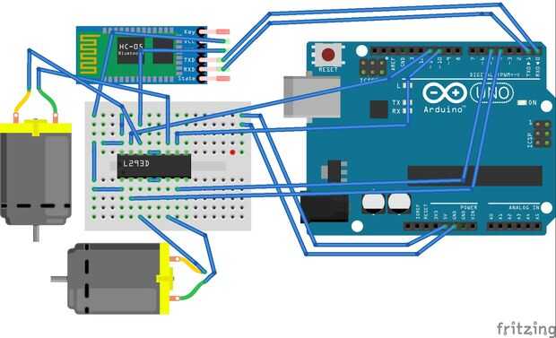 El puente H envía 4 pines de arduino es decir... pin 2 para cada motor. Para hacer este coche funcionamiento se requiere un transmisor (tx) pero aquí no utilizamos un transmisor pero vamos a utilizar nuestro dispositivo android como nuestro transmisor y conecte a nuestro coche a través del módulo de HC-05 (vía bluetooth básicamente).