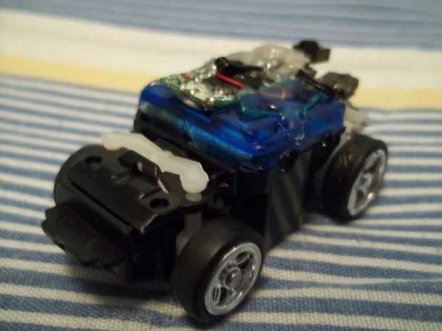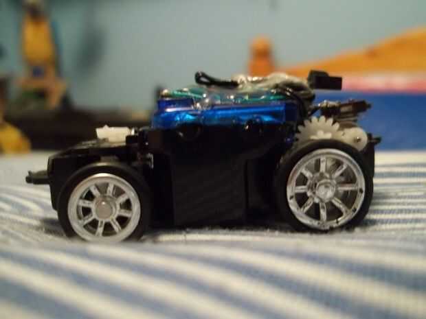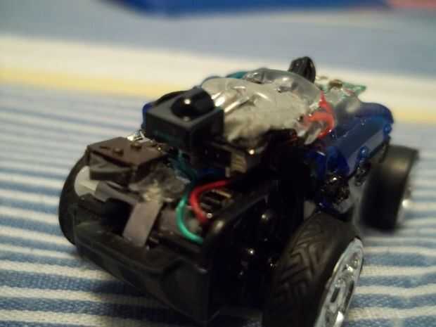 El resultado fue un coche pequeño muy rápido, pero mantuvo girando fuera de control y arriba no caben en debido a la orientación de la placa de circuito detector de IR.