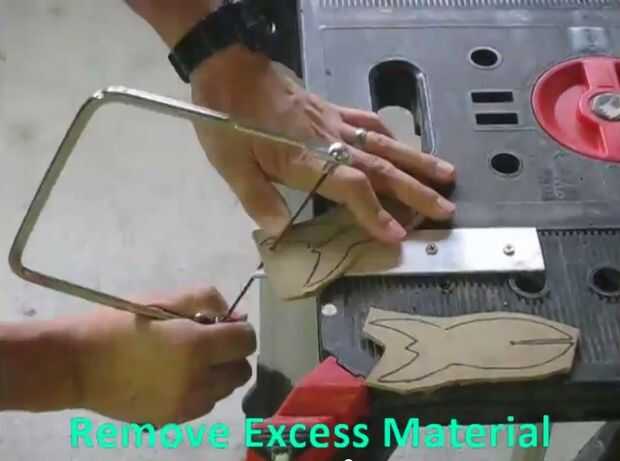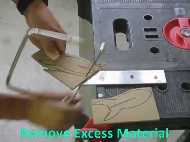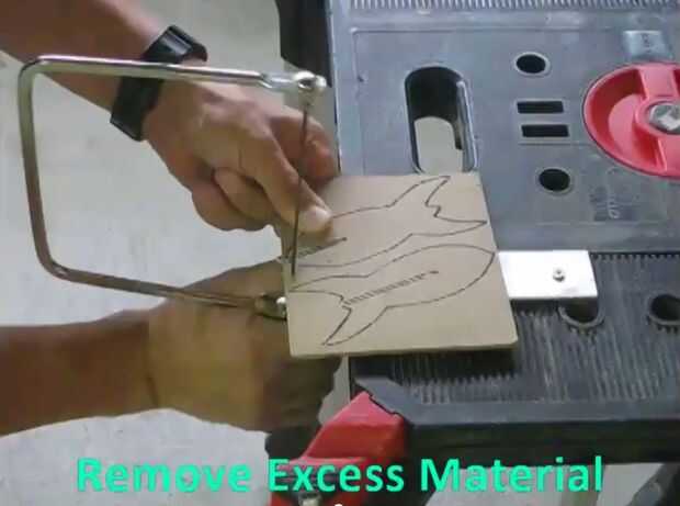 Use una sierra de marquetería y corte entre los dos trazados más del exceso de material. La idea es no poner el corte en las líneas de los trazados, sino a dejar espacio para que los cortes no son a partir justo al lado del corte en los siguientes pasos.