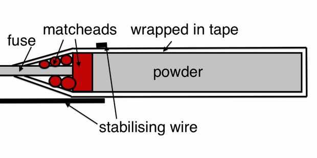 ahora debe tener el fusible atascado el tubo pero suficiente espacio para añadir un poco más de combustible para la oportunidad adicional de ignición. seguir adelante y añadir un poco de cabeza de partido o polvo que derramó antes para que se enciende muy bien.