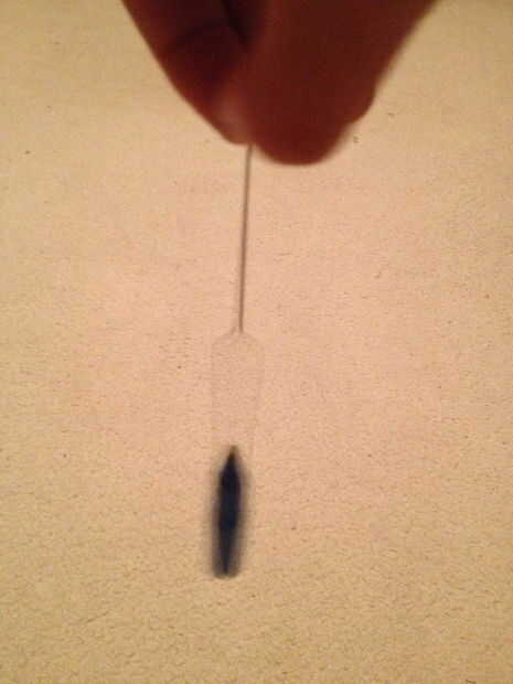 la última cosa que necesita hacer es asegurarse de que el alambre es directamente debajo del tubo para que vuela recto. Usted puede hacer esto girando con cuidado el extremo del cable y si el tubo se gira sin bamboleo, bueno. Si tambalea, el centro de gravedad no está en el cable, y necesita doblar por lo que es.