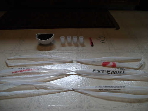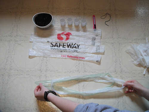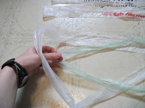 ** Asegúrese de que tire el nudo apretado y pequeño como sea posible, pero tenga cuidado de que no rasgar las bolsas. **