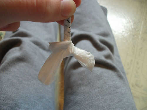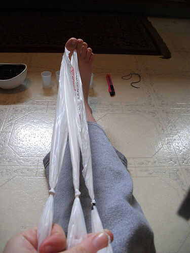 -Bien trenza de casi toda la longitud de las bolsas, pero al llegar al final no atar apagado! En cambio, sencillamente uno de los extremos a través del lazo de otro, esto será suficiente para impedir que viene aparte.