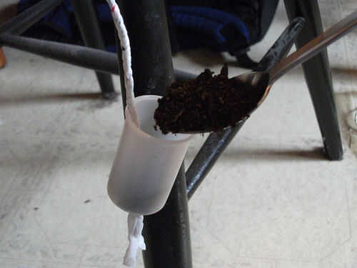 -Llenar cada recipiente con el suelo (encontré una cuchara para ser de gran ayuda para este paso) y plantar sus semillas.