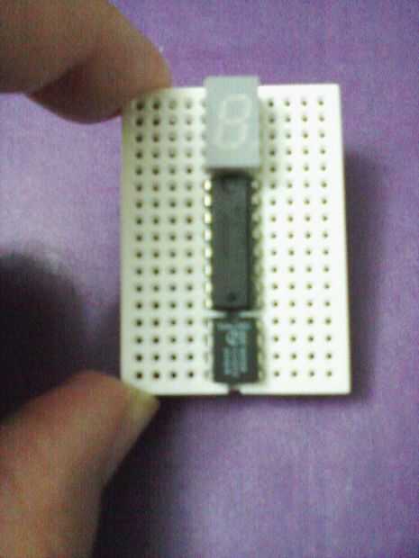 En este paso, usted va a instalar la mini pantalla de LED de cátodo común, el IC 4026 y el temporizador IC 555 en su protoboard mini.