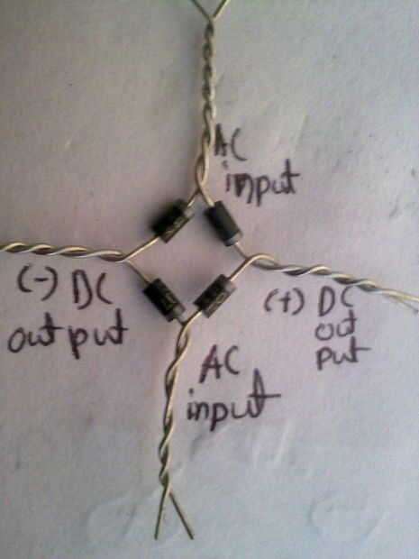 el circuito es complete.the unirse a lugar que nombraron CA son la electricidad de input.ac de CA deben ser dados a través de estos dos extremos de ends.the llamado lado negativo positivo salida dc positivo electricidad dc saldrá de ti.y el final llamado positivo es la output.that dc negativo es negativo dc electricidad saldrá it.so su ac a dc convertidor es ready.have divertido con él